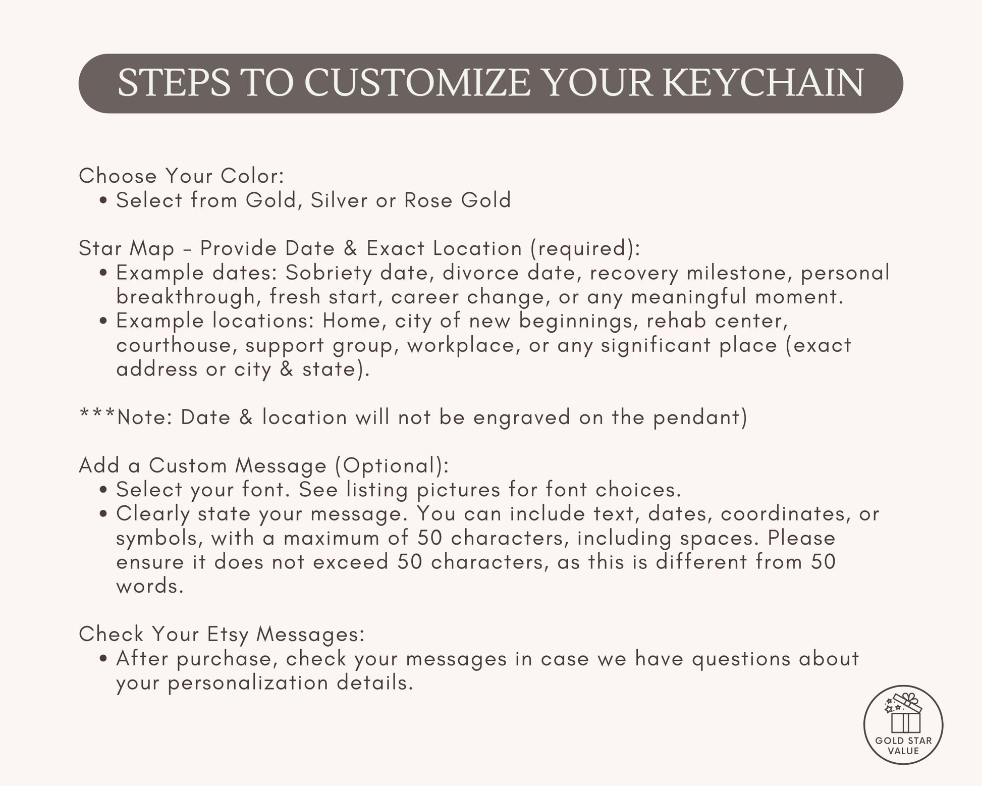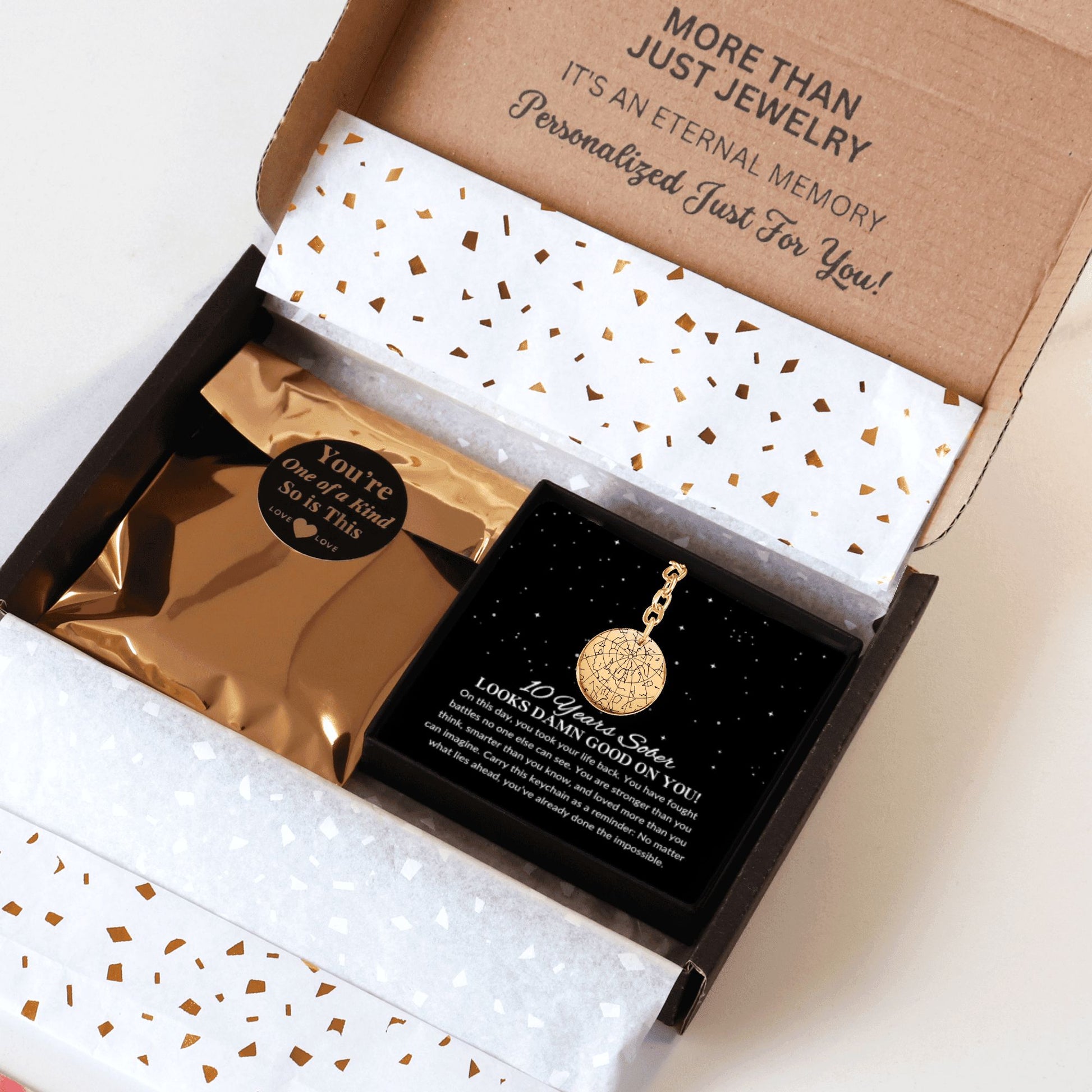 10 Year Sober Anniversary Gift – Custom Sobriety Star Map Keychain
