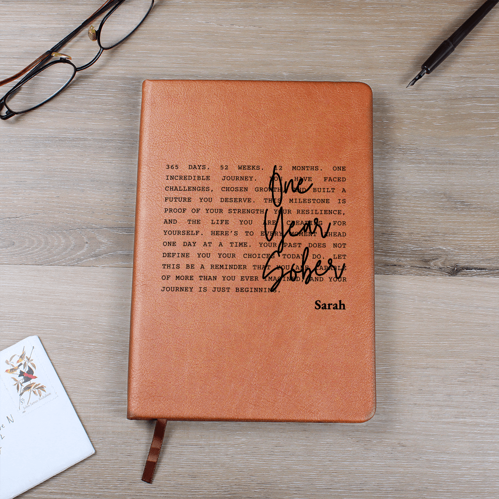 One Year Sober Leather Journal – Sobriety Milestone Gift