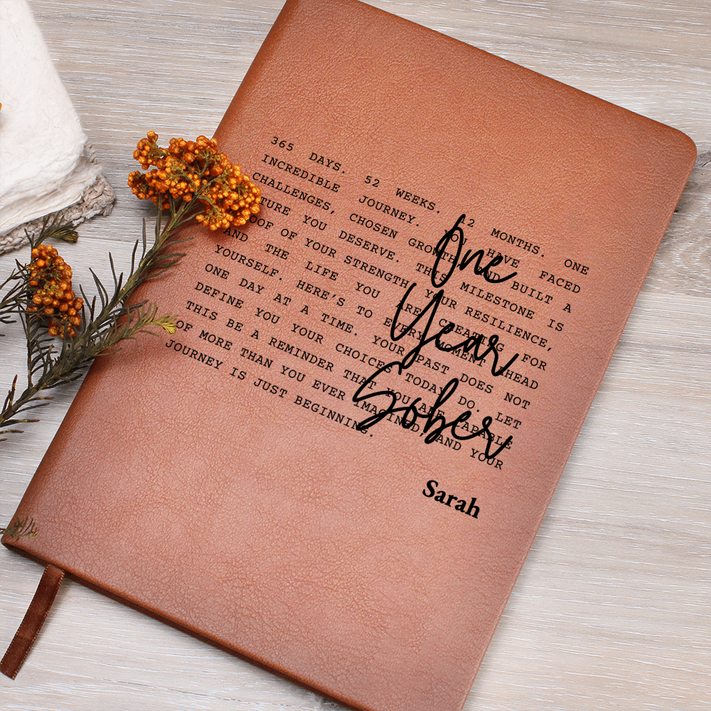 Celebrate the incredible achievement of sobriety with this Personalized Leather Journal. A meaningful one year sober gift, it’s perfect for recovery milestones, anniversaries, or simply as encouragement for someone’s journey. Crafted with care and designed to inspire reflection, this journal is a daily companion for gratitude, progress, and hope.